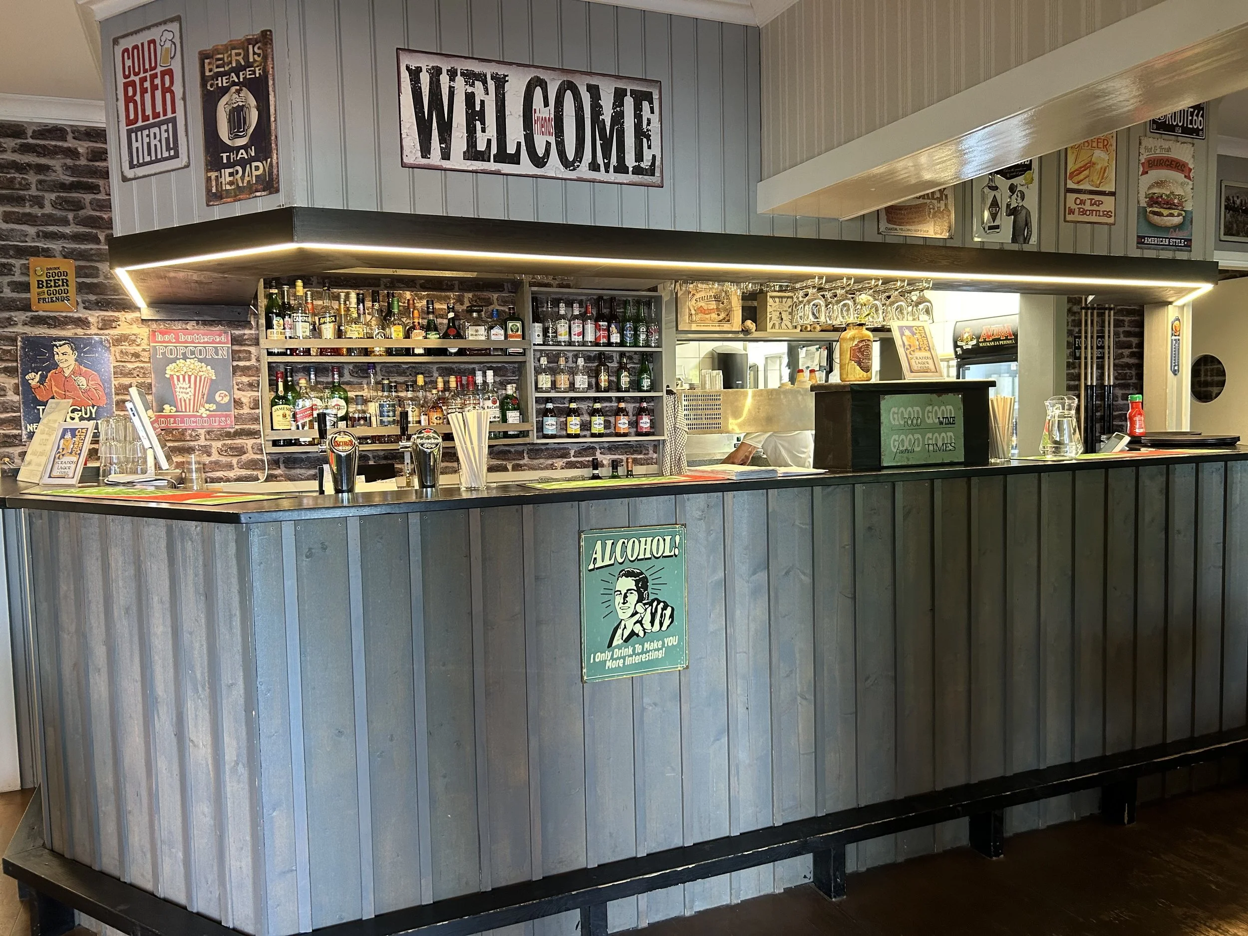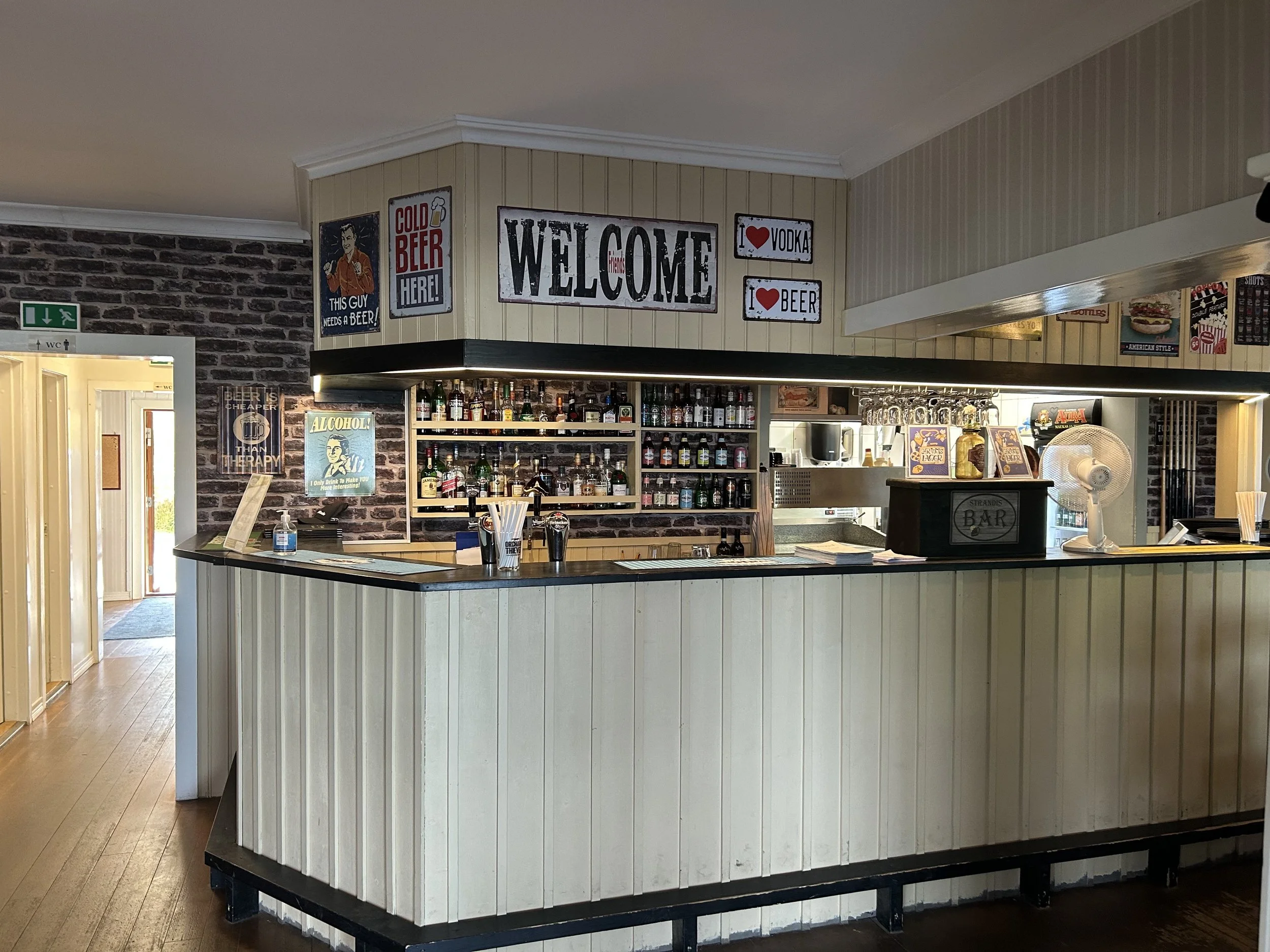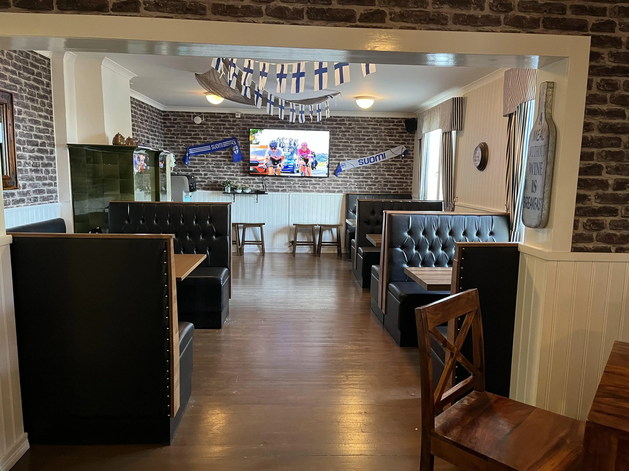 I salen har vi 15 platser att sitta i soffor, och även 15 platser vid pub sidan, där du också hittar dart tavlor och biljardbord.