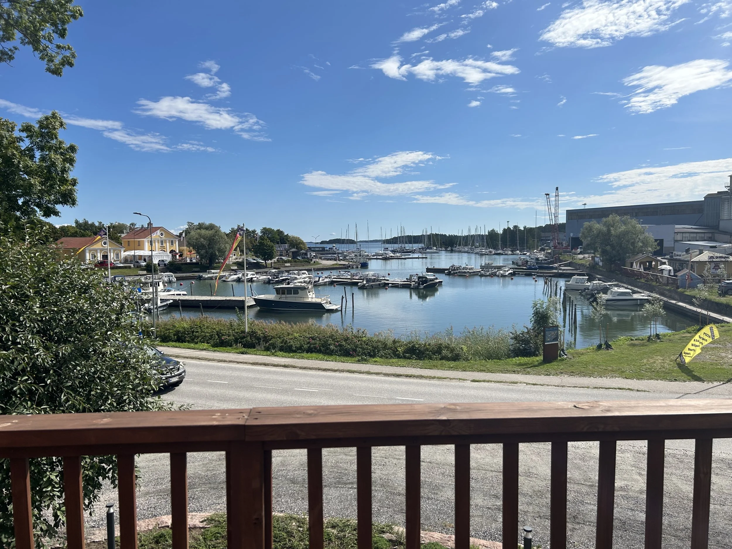 Verandan byggdes 2007 och inredningen är modern och maritim.